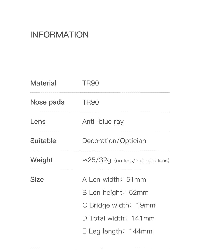 Lightweight TR90 frame for easy, all-day wear